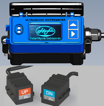 OLED本地显示流量变送器/流量计,两根1.5米长探头线已连接好主机和标准外夹探头,不需要现场重新连接探头线。整机IP68防水。带电容触摸2按键,带红外通讯接口, 内部带USART接口, NFC标签。海峰仪器品牌。探头捆绑部件需另行购买。RS485接口, 红色芯线为+24V电源输入, 黑色芯线是电源地,黄色芯线是 RS485+, 绿色芯线芯线是 RS485-